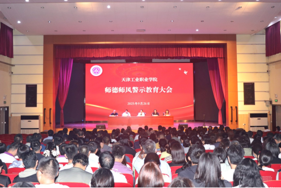 为进一步加强师德师风建设,引导教师坚守育人初心,筑牢师德防线。近日,我校召开2025年天津工业职业学院师德师风警示教育大会,校领导班子成员、全体教职工参加。会议由校党委副书记主持。